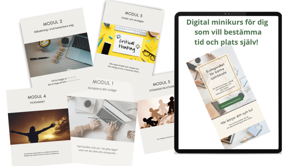 En digital självstudiekurs i fem moduler som hjälper dig att bygga en starkare självkänsla – steg för steg.